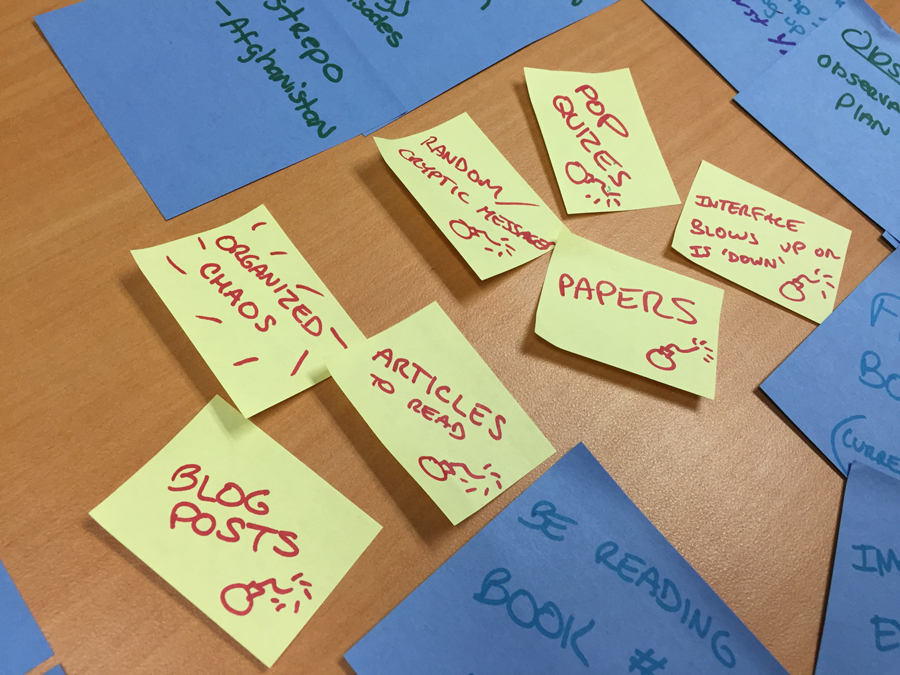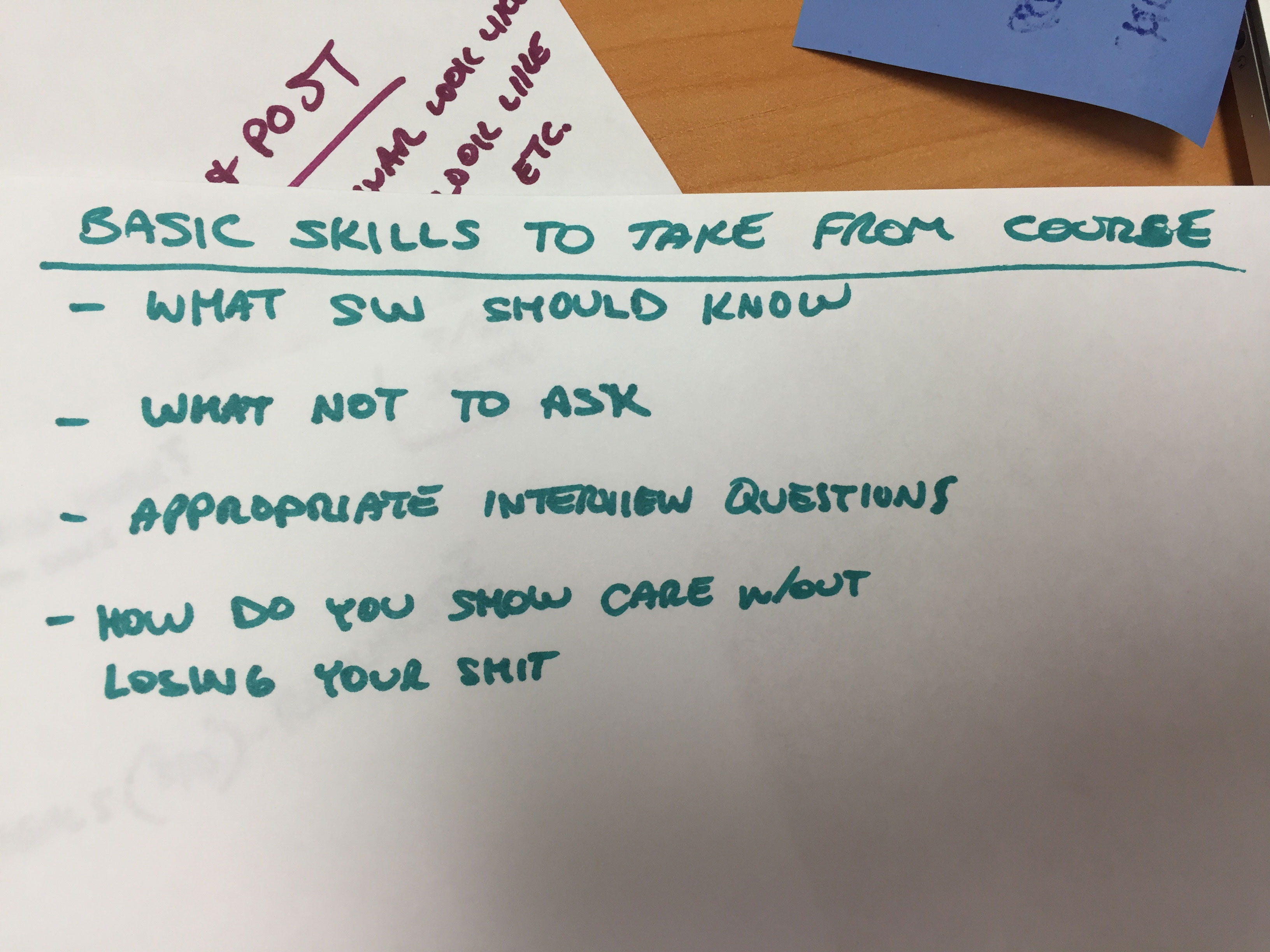 As I developed the team I used various brainstorm sessions to aid in testing out the fit of these team members. By providing the instructor and veterans with various prompts, I was able to facilitate discussions around what her ultimate teaching goals were, what the students should come away with and some starting ideas of how this course might take shape in some unconventional ways.