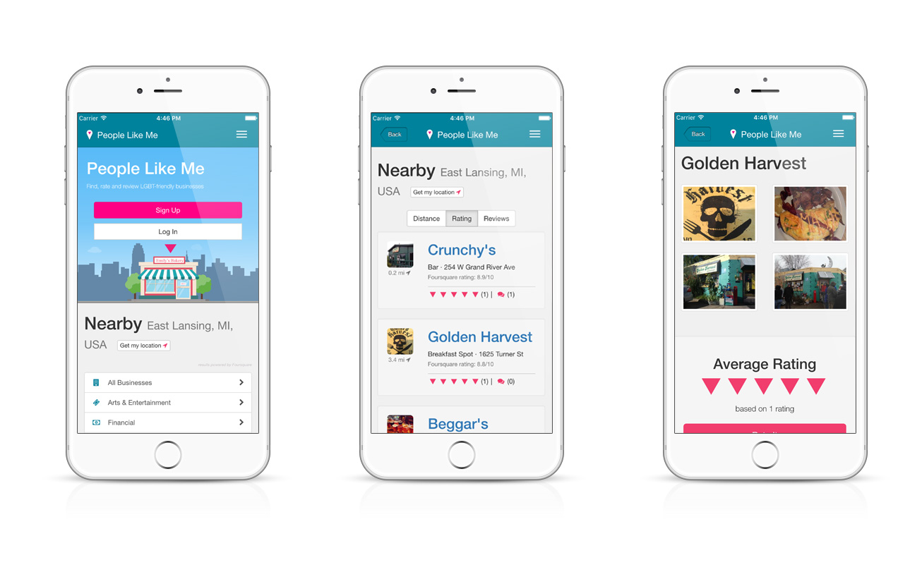 People Like Me, the application to find, rate and review LGBT-friendly businesses really began back in 2012 when I was finishing my master’s degree at Michigan State University. I have had so many areas to learn and grow my skills while developing this project that it really has become a passion project of mine.
